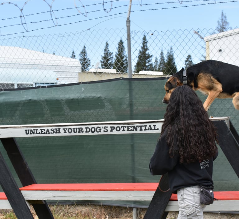 Our Day Training program will provide your dog with socialization, enrichment, exercise, and basic obedience principles. Each dog in our program will begin their day by participating in social activities with other dogs in the program. After their socialization session, each dog gets a one-on-one training session with our day trainer. These sessions cover basic obedience principles, focus work, platform work, loose leash walking, etc.